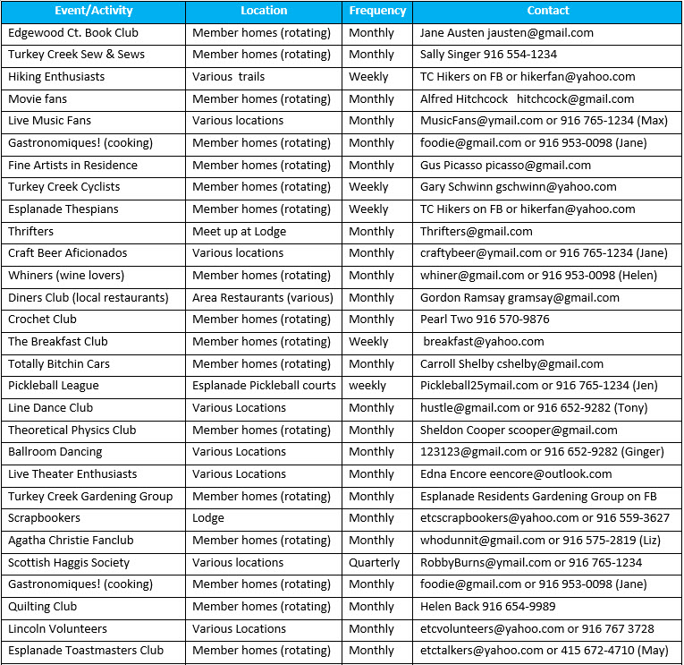 Clubs, Groups, and Activities at Esplanade at Turkey Creek.